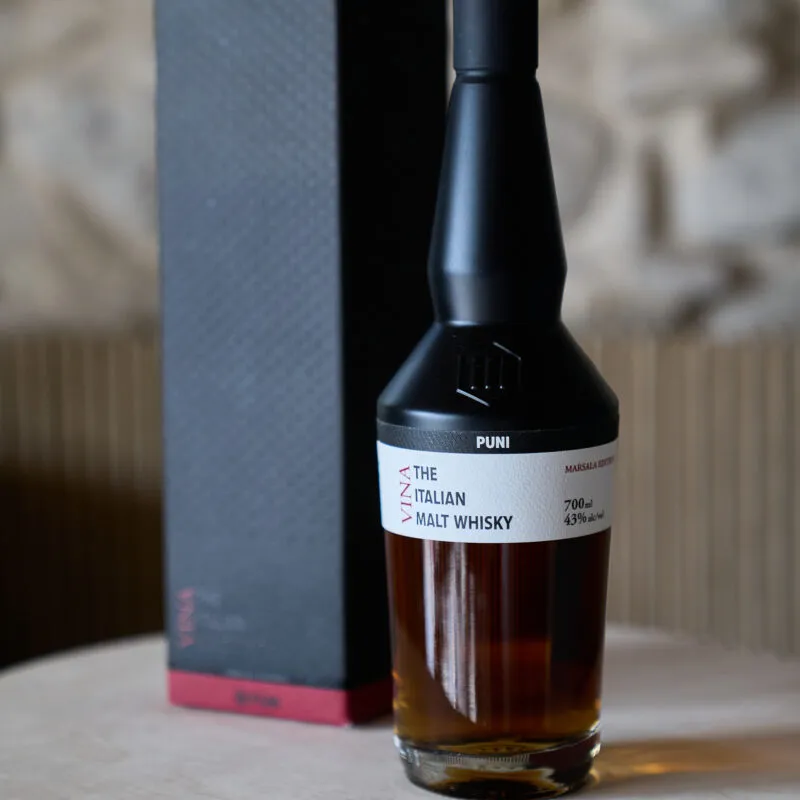 PUNI VINA è il nostro esclusivo whisky, maturato in botti siciliane che in precedenza contenevano vino Marsala. Questo speciale processo di maturazione conferisce al whisky un carattere unico, con note di degustazione complesse di noci, cannella e sfumature fruttate.